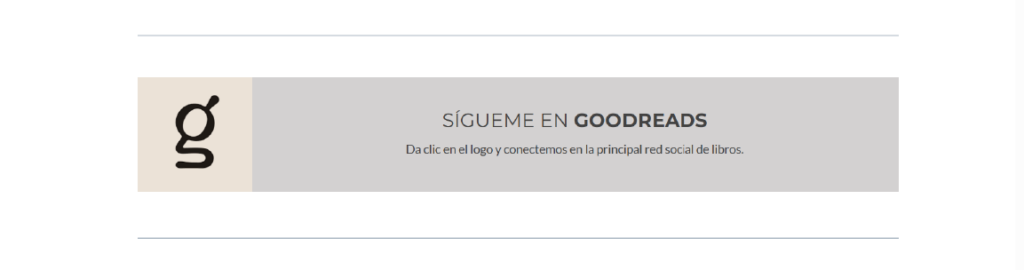 Después de esto, en el banner, al dar clic en la imagen, podrás ir a mi perfil de Goodreads, dónde podrás seguirme, enterarte de lo que estoy leyendo en tiempo real y ver mis progresos de lectura.